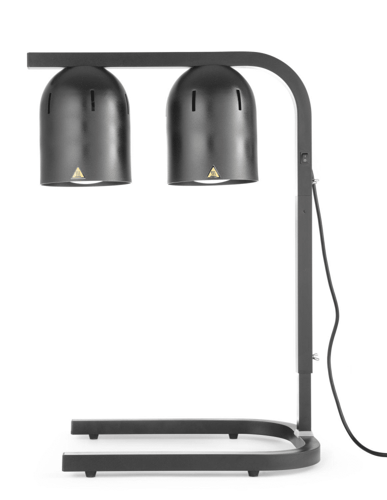 Warmhoudlamp zwart GN1/1 Ideaal voor het warmhouden van gerechten tussen bereiding en serverenIn hoogte verstelbaarVersplinteringsbestendige lampen inbegrepenAfmeting: 453x360x(H)790mmVermogen: 230V / 500W